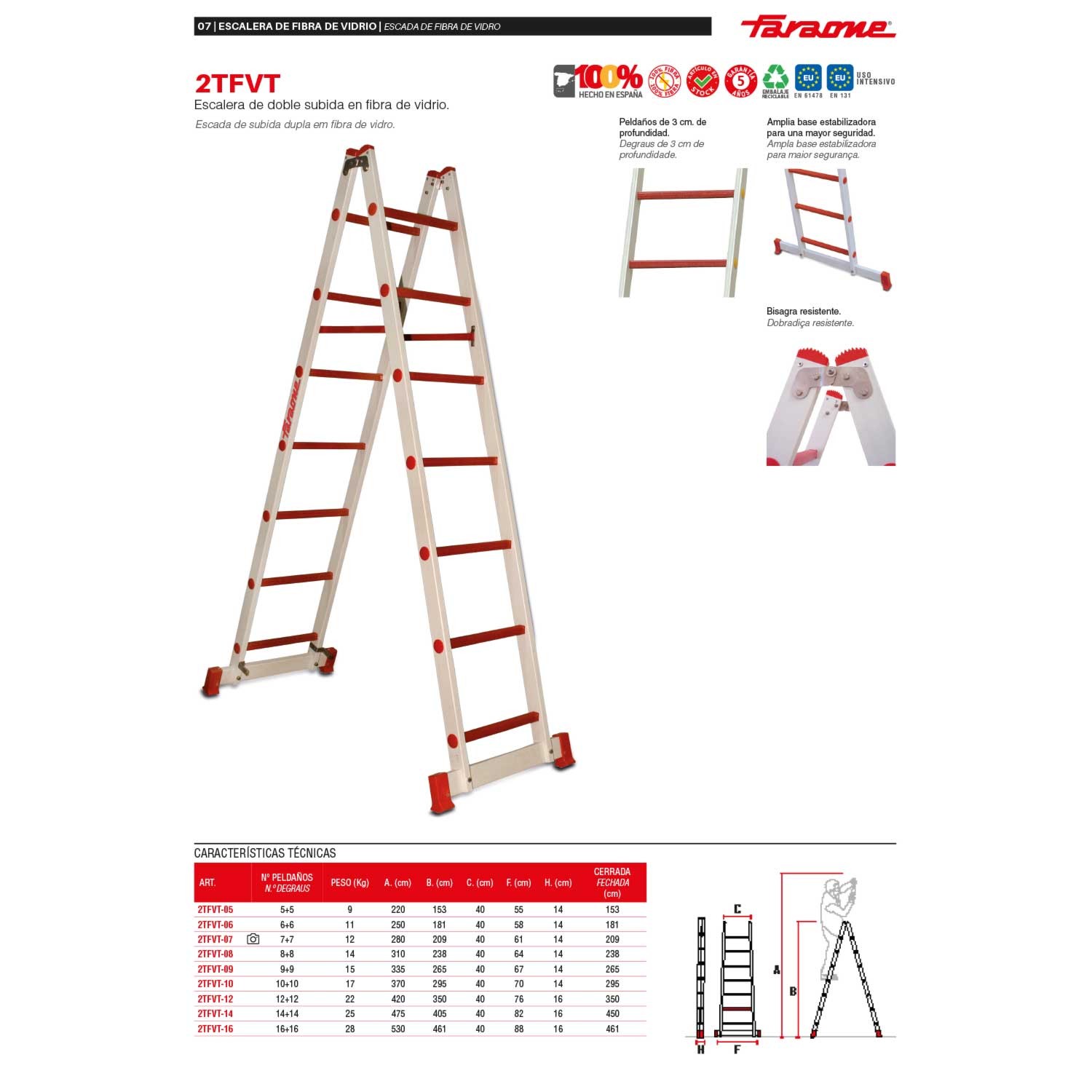 La escalera 2TFVT está compuesta de dos tramos fabricados en fibra de vidrio; ideal para trabajos con riesgos eléctricos.
