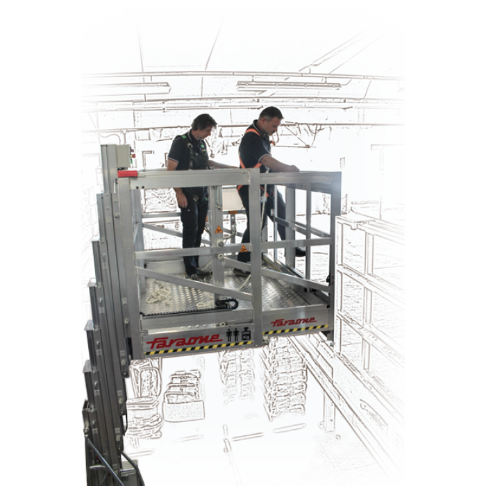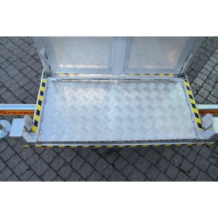Plataforma aérea homologada para aterrizaje en altitud. Factible en plataformas fijas y autopropulsadas hechas especialmente, para 2 operadores. Posible en plataformas autopropulsadas y fijas fabricadas específicamente. Carga Máx. 200 kg. Certificación CE otorgada por TÜV. Fabricada bajo la norma EN280.