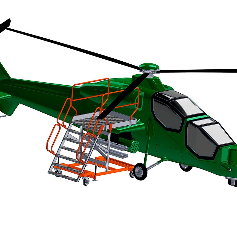 Amplia variedad de estructuras a medida diseñadas para el mantenimiento de vehículos aéreos y, en especial, helicópteros. Configurables según requisitos del cliente.