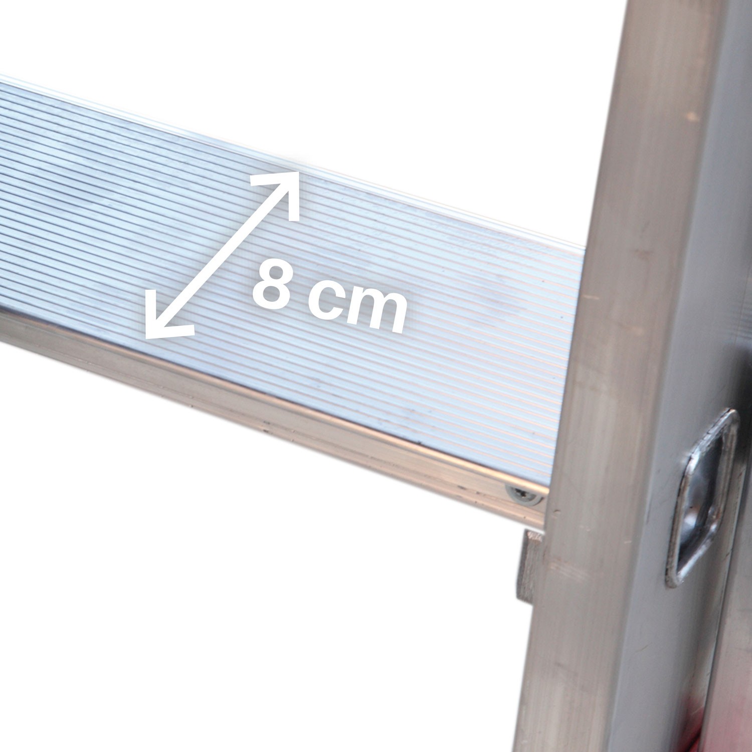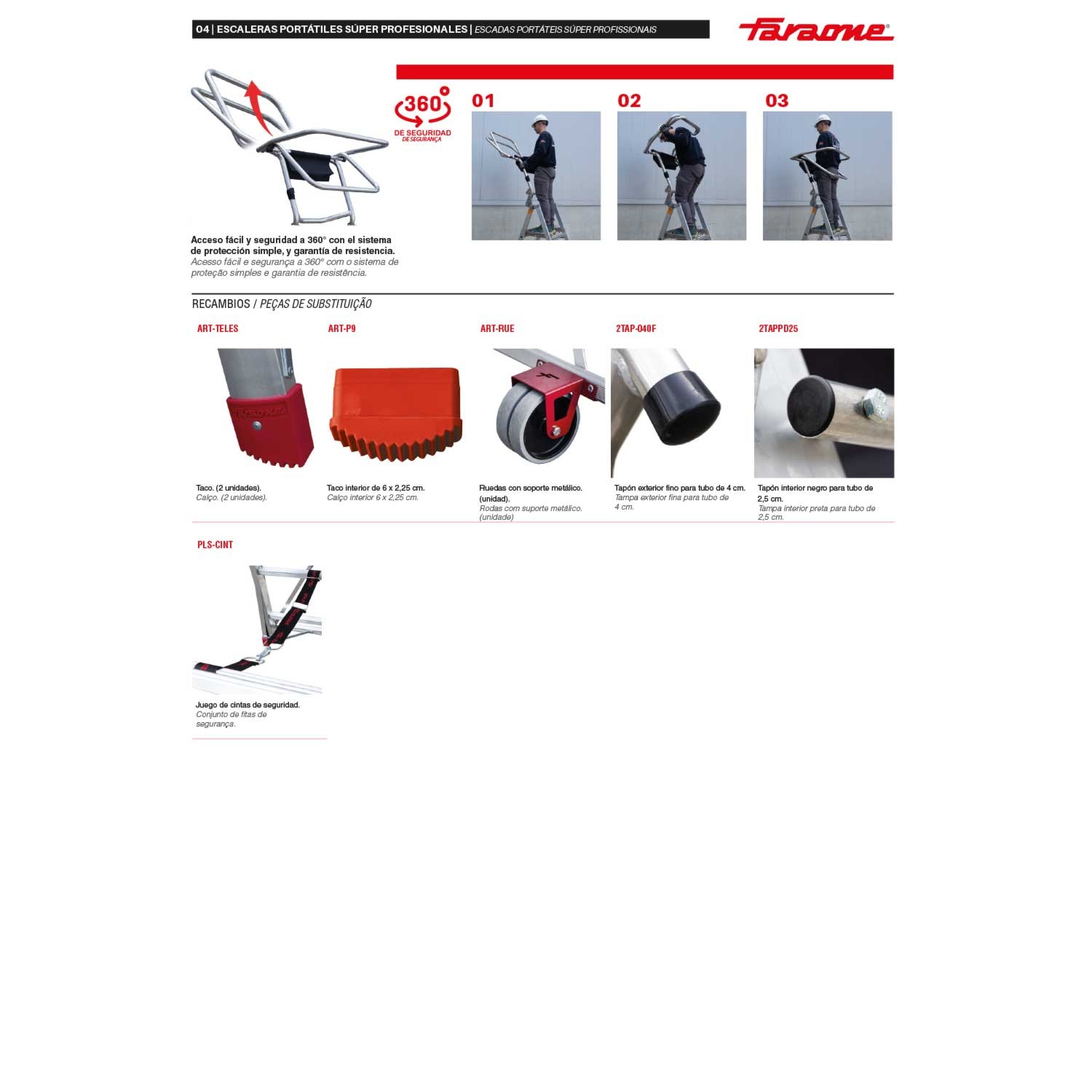 La escalera plegable PL-COMPACT está diseñada para ofrecer la máxima seguridad, estabilidad y comodidad en trabajos en altura. Equipada con una amplia plataforma de trabajo antideslizante de 40x40 cm y peldaños de 8 cm, garantiza un apoyo firme y cómodo durante el uso. Su innovador sistema de plegado con seguro antiapertura permite un transporte ágil y un almacenamiento compacto, ideal para entornos profesionales que requieren movilidad y eficiencia. Fabricada en aluminio resistente, destaca por su robustez, facilidad de uso y un diseño orientado a la seguridad 360°. Disponible en versiones de 3+3 a 6+6 peldaños, con ruedas dobles y sistema de fijación robusto para mejorar la maniobrabilidad.