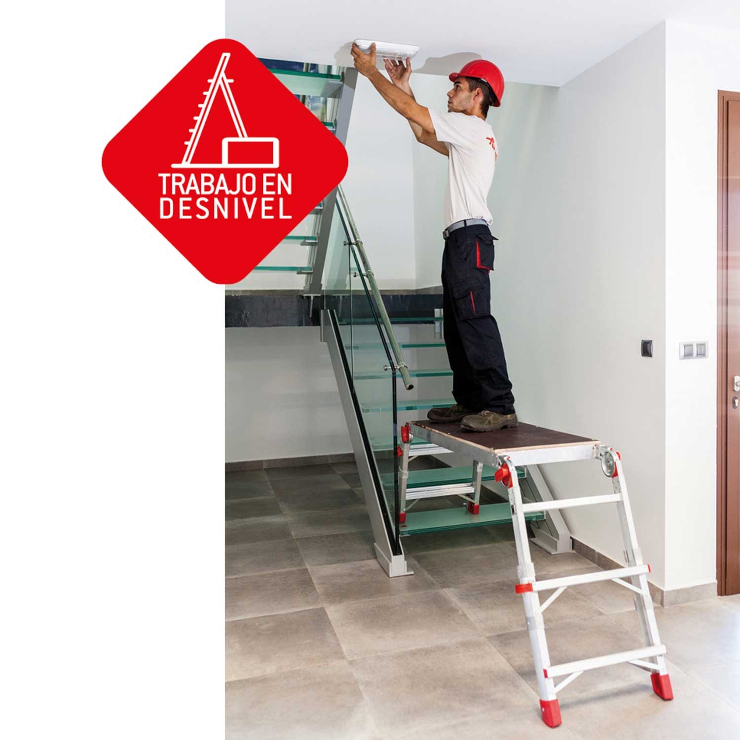 Este tipo de plataforma se suele utilizar en obras por profesionales que no necesitan alcanzar grandes alturas pero quieren una plataforma amplia donde moverse cómodamente. Esta plataforma está pensada para trabajar a una altura máxima de 290 cm, altura ideal para trabajar en el interior de viviendas.