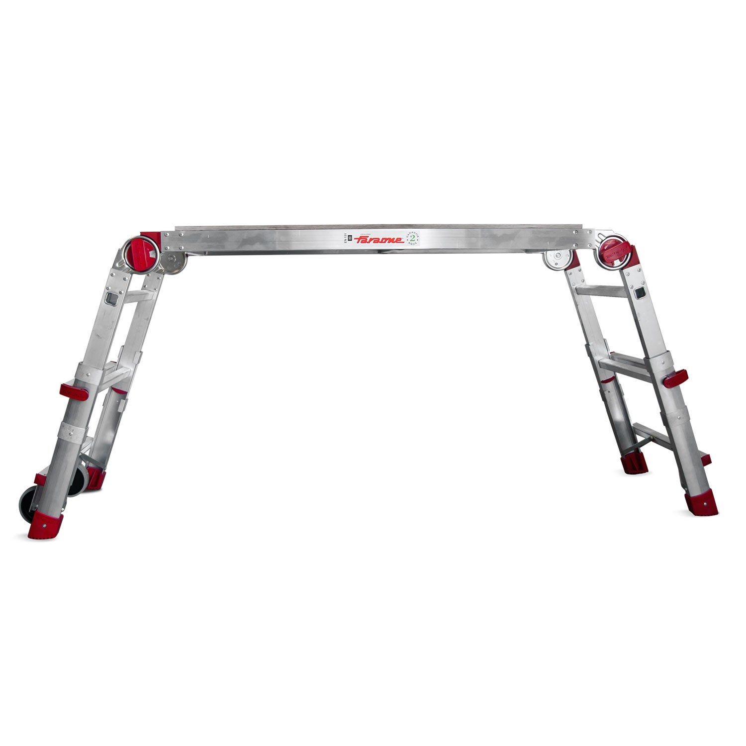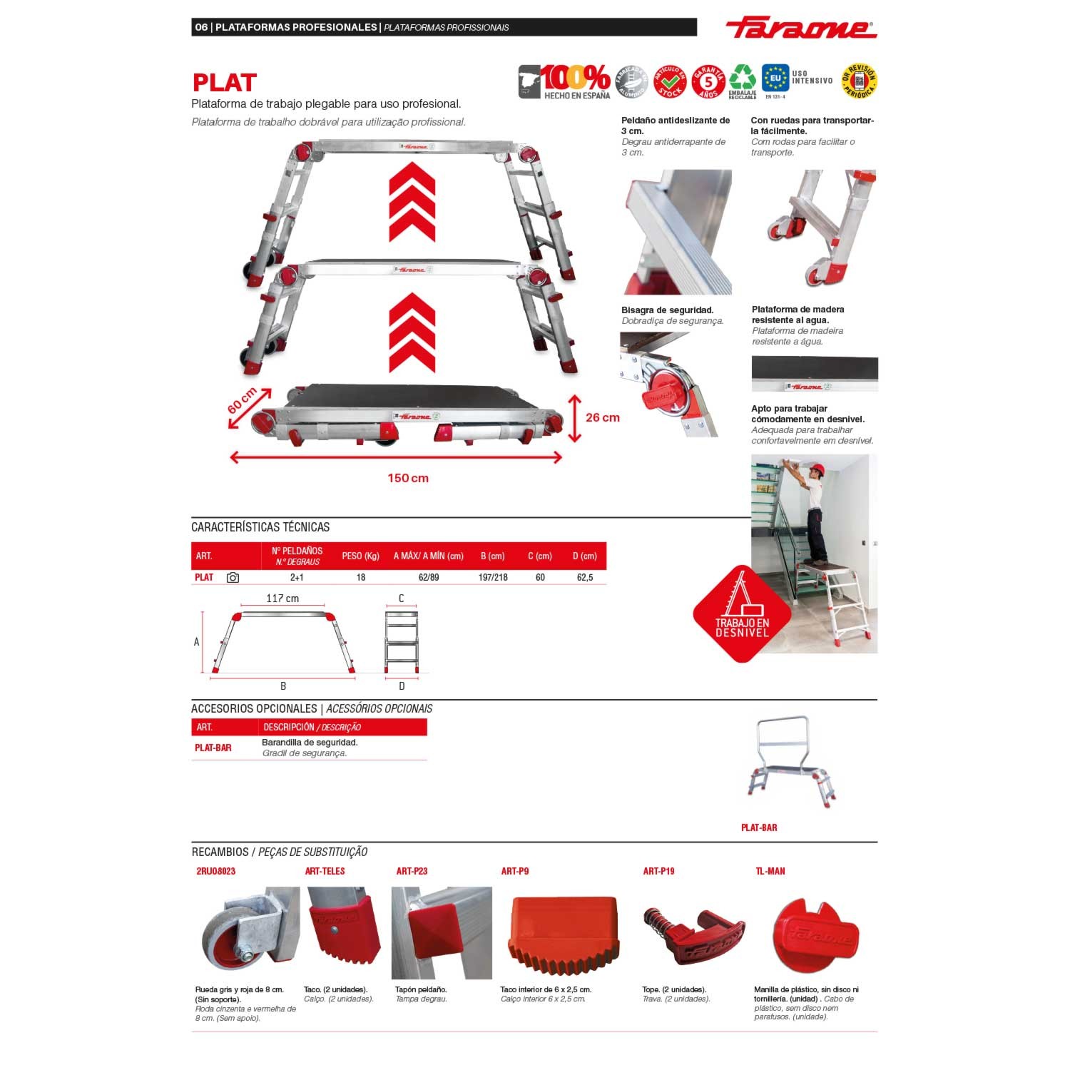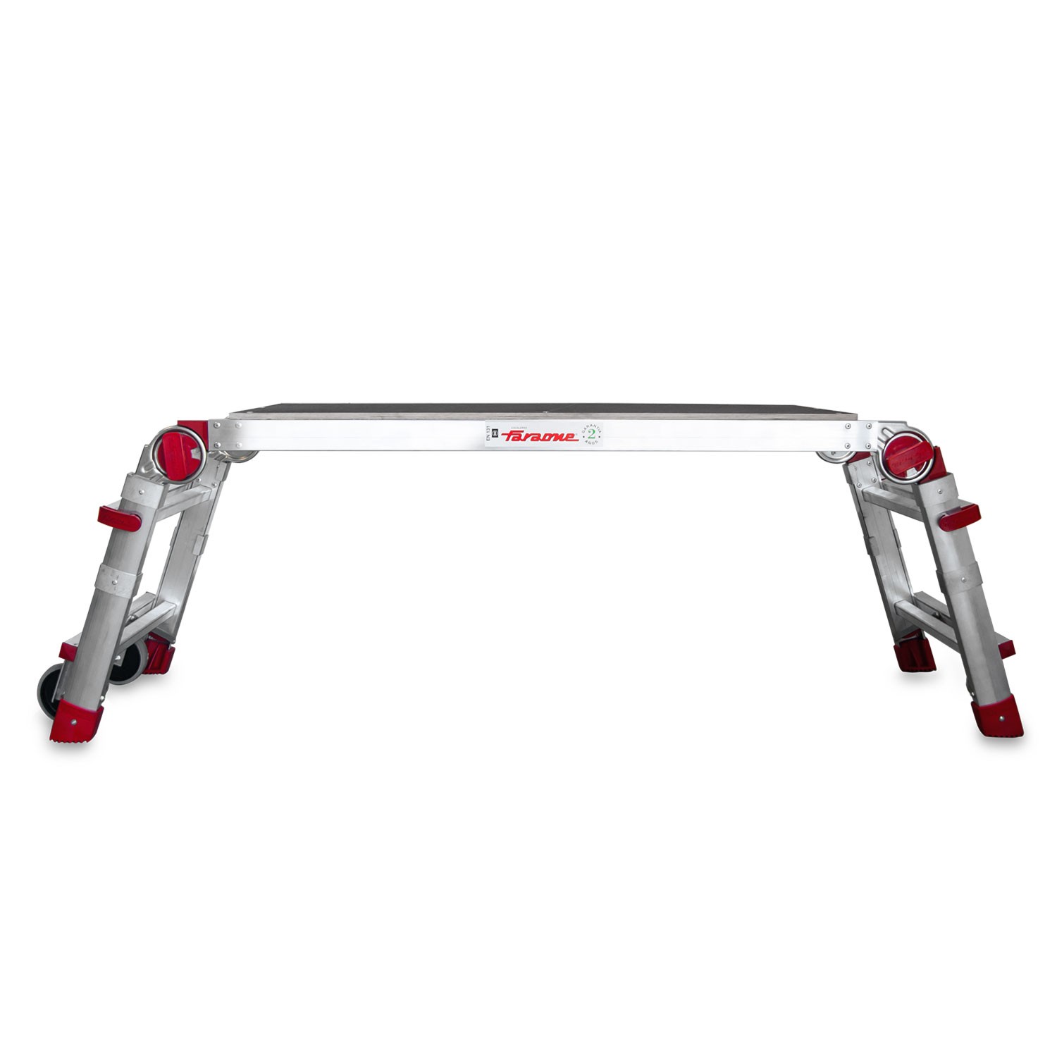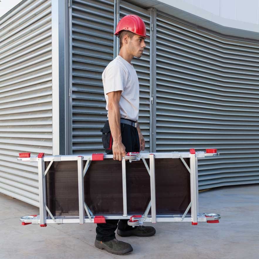 La PLAT es una plataforma de trabajo plegable con ruedas y amplio plano de trabajo fabricado con una madera especial resistente al agua. La principal ventaja de este modelo de plataforma es que se puede regular en altura, lo que permite trabajar de forma segura también en suelos que no estén perfectamente nivelados como aceras o escalinatas.