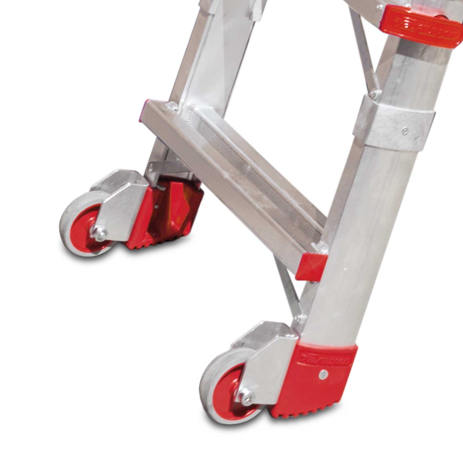 La escalera se desplaza mediante dos ruedas de 8 cm de diámetro instaladas en la parte trasera.