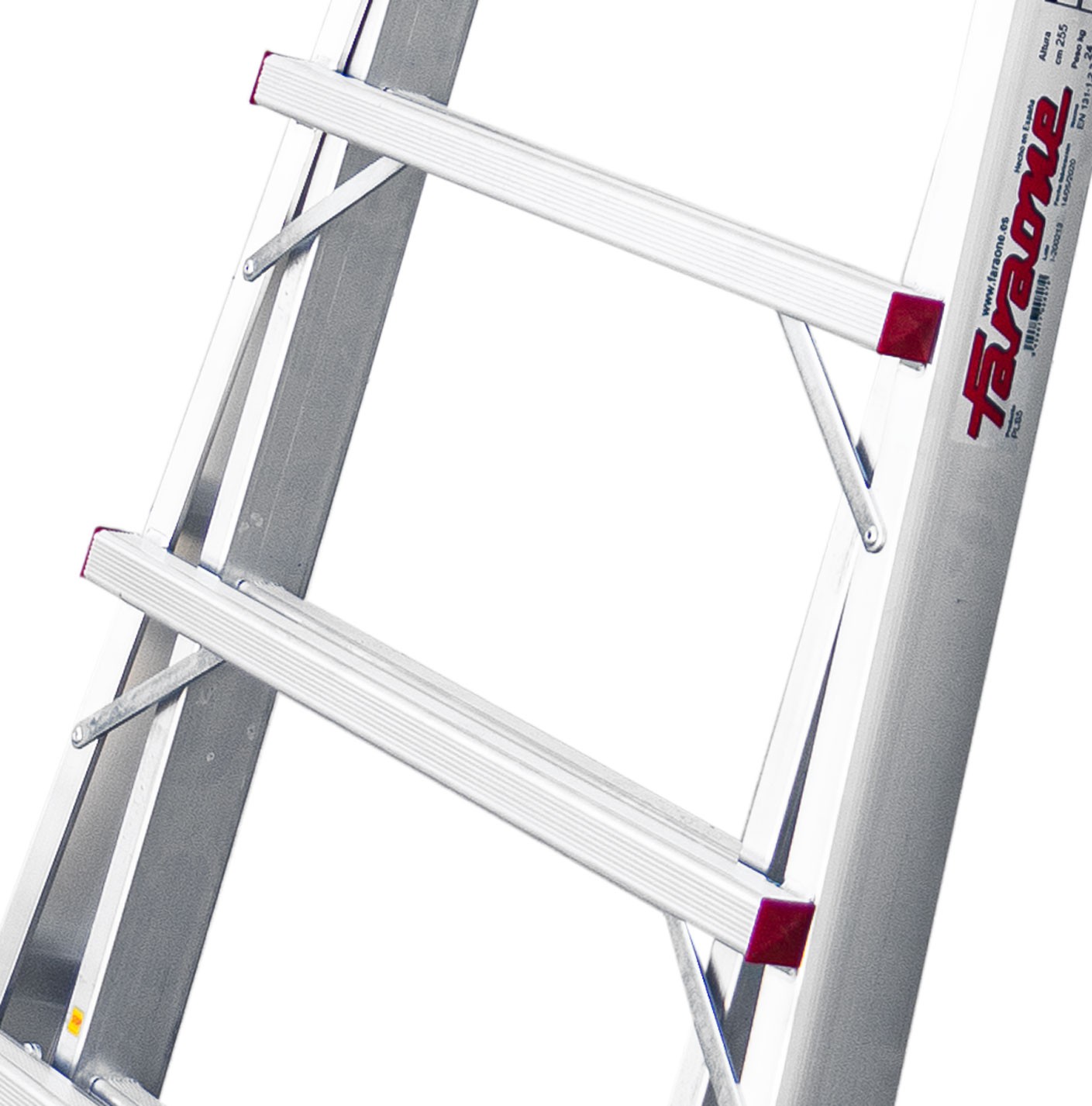 La PLS es una escalera generalmente utilizada en obras por profesionales que quieren trabajar con una escalera ligera, fácil de transportar y segura. Además, posee dos estabilizadores retractiles que garantizan la seguridad del trabajador.