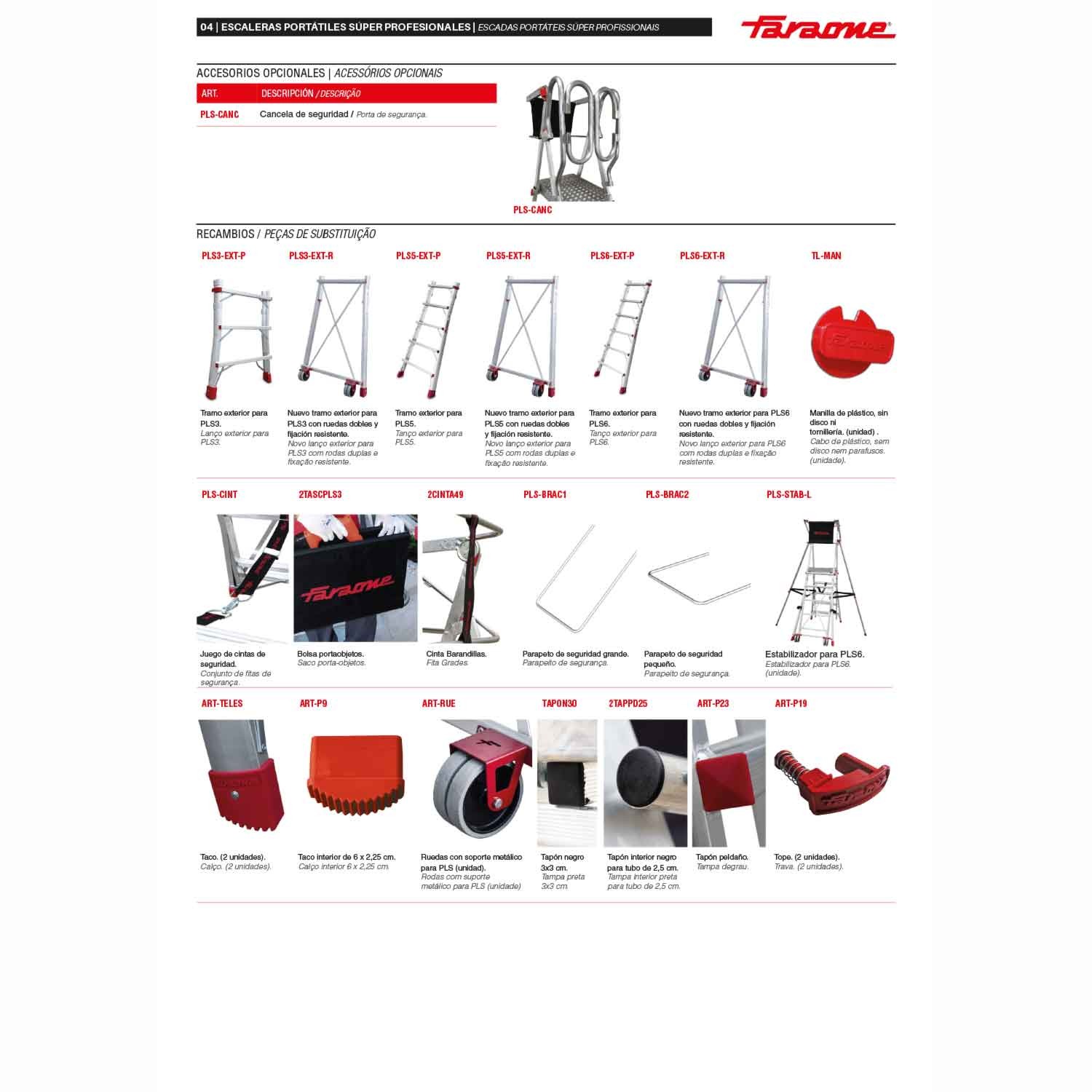 Notas: La referencia PLS5 lleva los estabilizadores de serie y la referencia PLS6 lleva los estabilizadores de serie y alcanza una altura máxima de trabajo de 4,40 m.