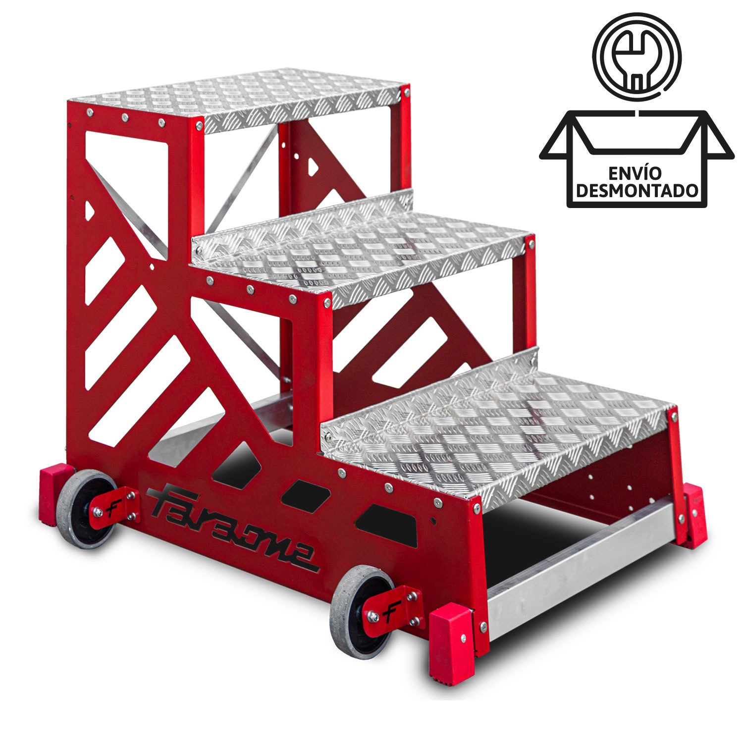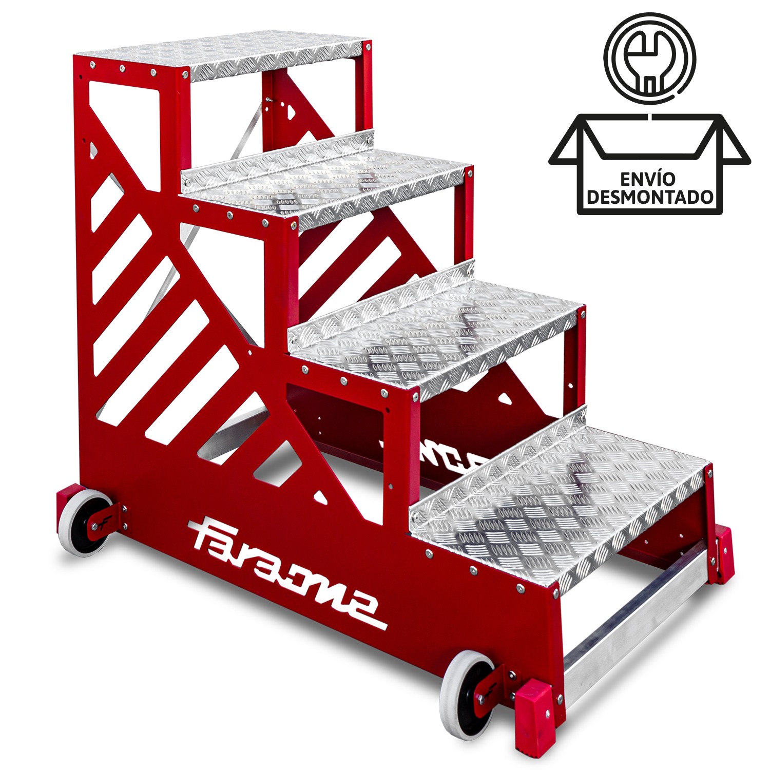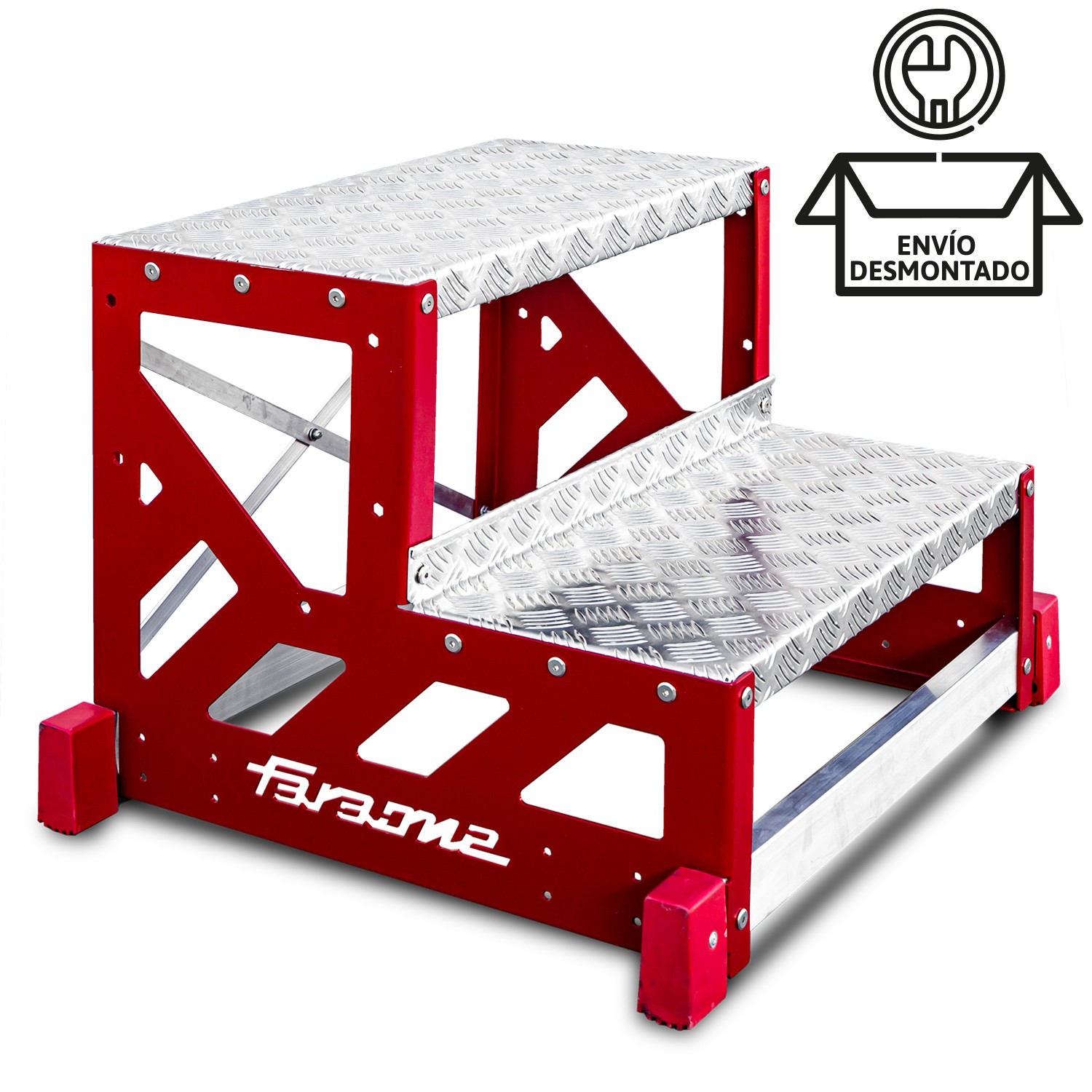El SGAS es un taburete de aluminio fabricado con peldaños antideslizantes de 25x50 cm para dotar de estabilidad y seguridad durante el uso. Taburete tipo cúpula en el modelo de un peldaño y taburete tipo gradilla en el resto de modelos.