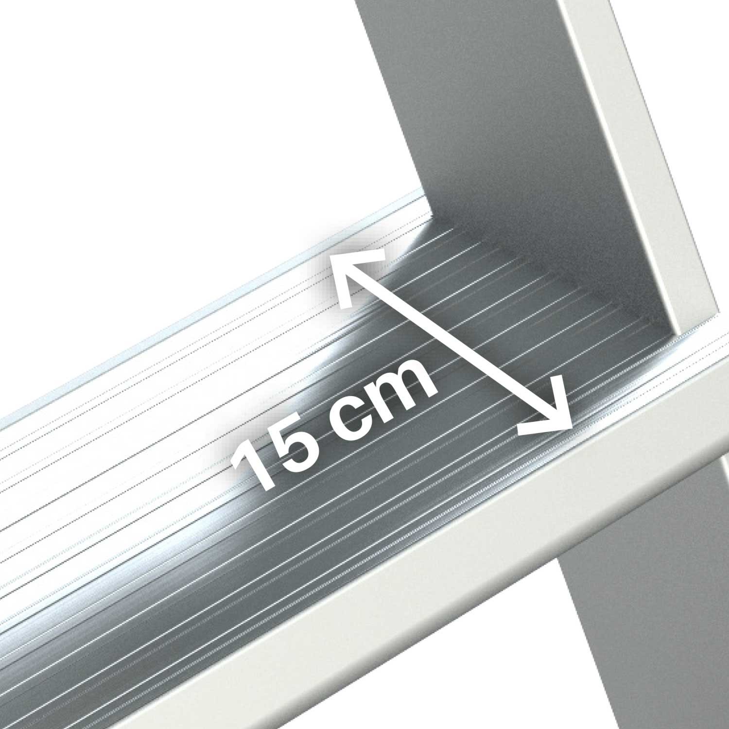 La parte trasera es vertical; lo que permite aproximar la escalera a maquinarias, paredes verticales y estanterías.